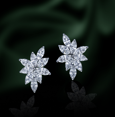A radiant cluster of marquise-cut natural diamonds arranged in a stylized floral bloom. Sharp brilliance meets delicate, organic beauty.