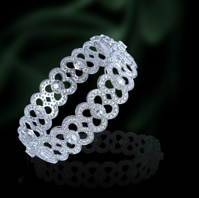 An intricate openwork design of interlocking natural diamond loops, offering airy, lace-like brilliance.