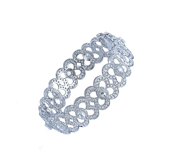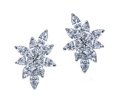 A radiant cluster of marquise-cut natural diamonds arranged in a stylized floral bloom. Sharp brilliance meets delicate, organic beauty.